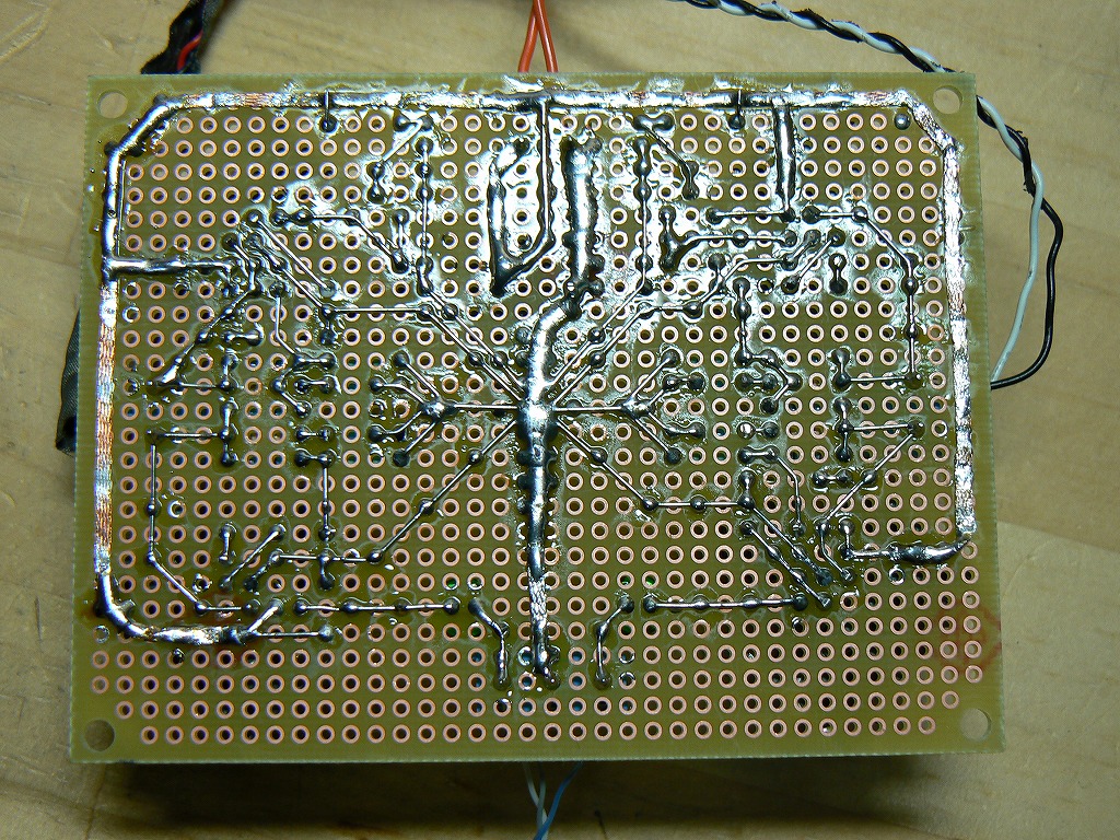 電源ラインの配線には半田吸い取り線からフラックスを除去したものを使っています。