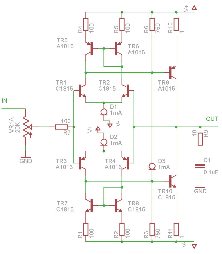 トランジスタが1815/1015ペアじゃないせいか、バイアス電流が50mAあるせいかわからないけどずいぶん低音の歯切れがいい気がする。電源に電解コンデンサついてないのにw