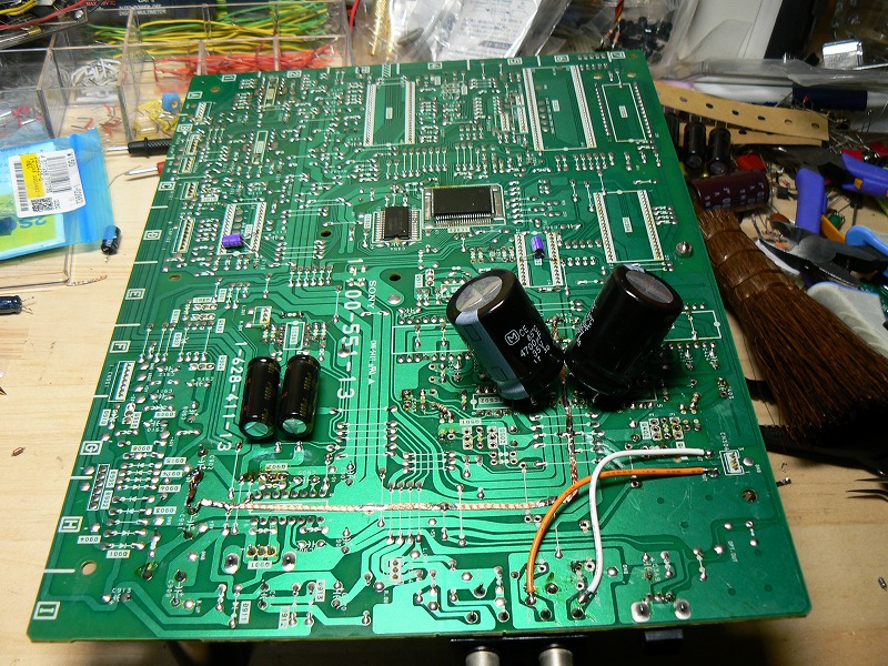 全体的に電解コンデンサの容量が小さかったので手持ちの大きいのに交換しました。