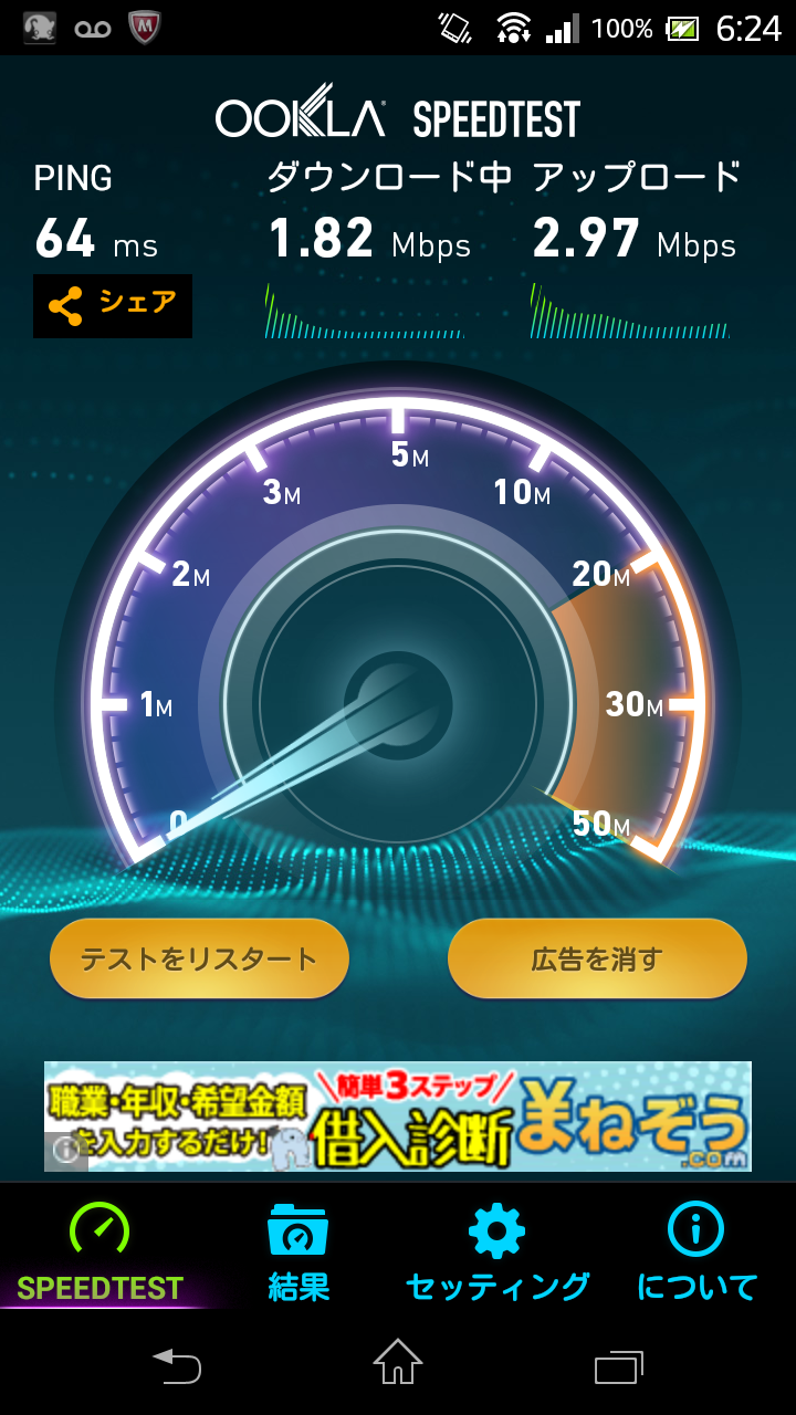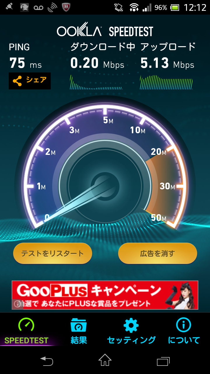環境としては、仙台の自宅でモバイルルータのWM340にSIMを挿入し、スマホに無線LANで接続しています。自宅だと、たまにLTEが切れる…くらいの環境なのですが、計測時はどれもLTE接続時です。