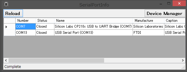 ・PCに接続されているすべてのシリアルポートの情報を一覧表示できる。