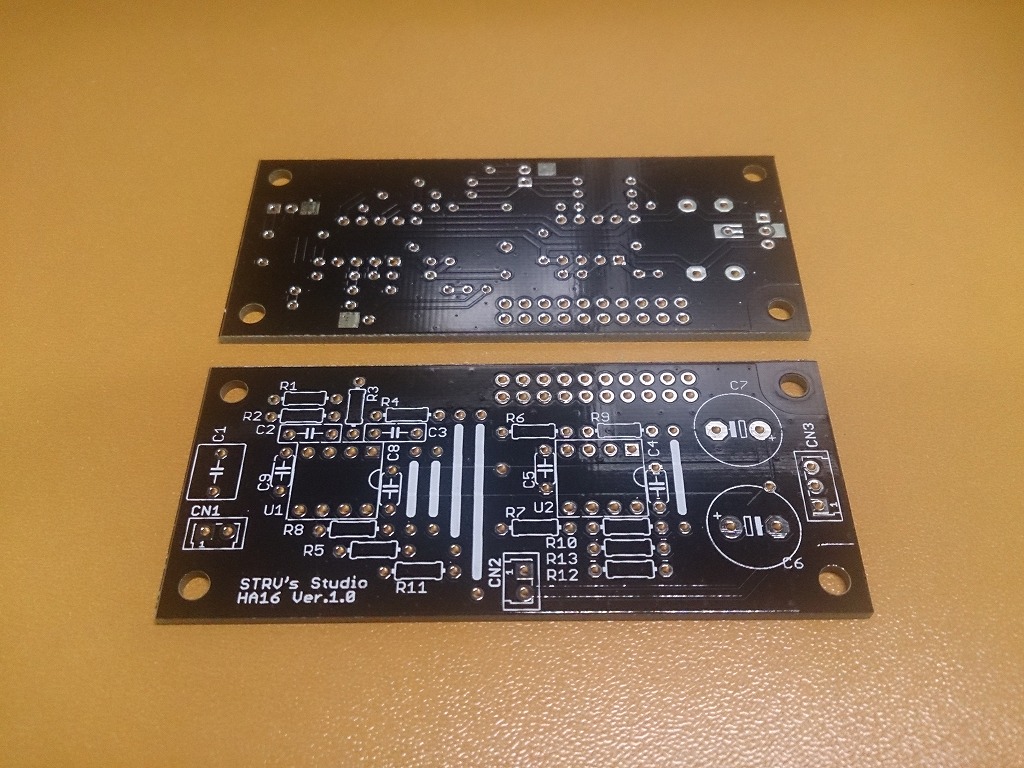 基板は1枚で片ch分の回路になっています。ステレオにするためには2枚の基板が必要になります。
