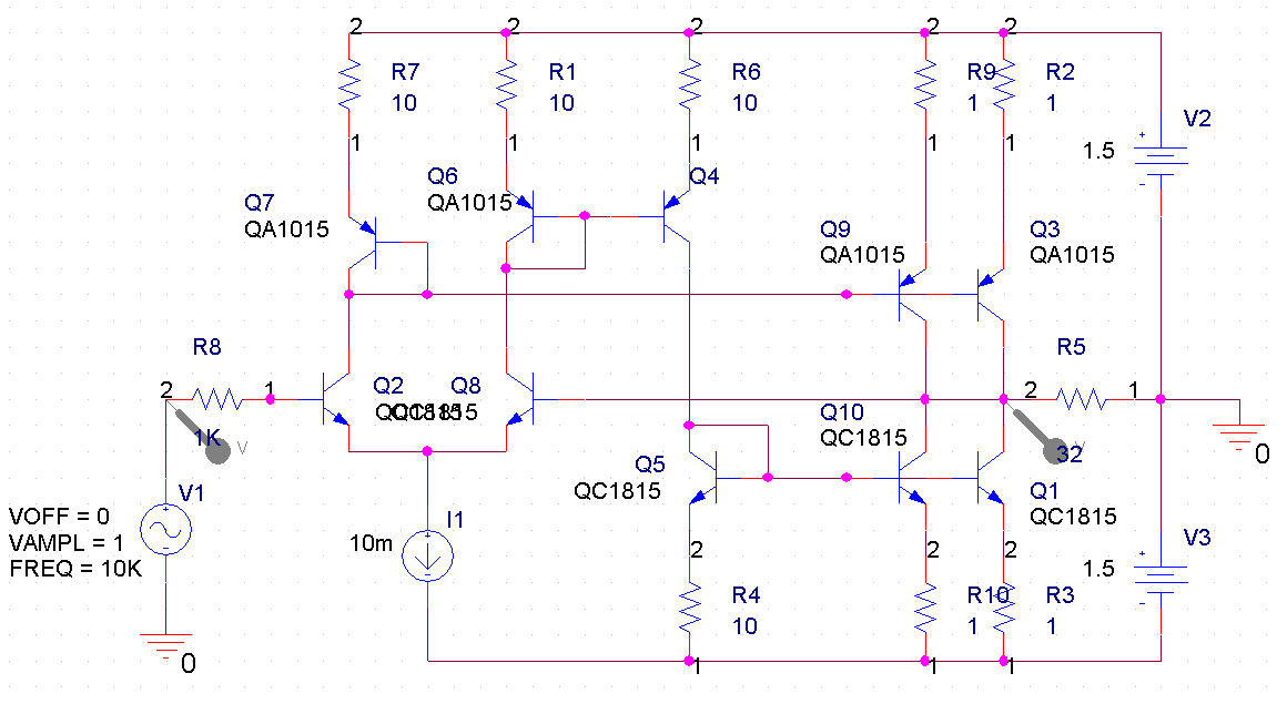 この回路で一番問題になるのは正側と負側でカレントミラーの段数が異なるので初段差動部分での電流値が異なることですね。