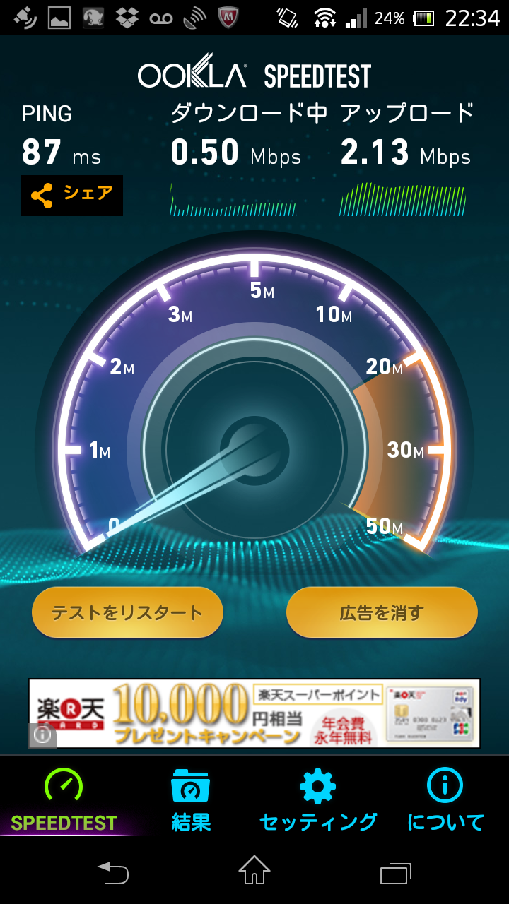 とまぁ、こんな感じです。時間帯によりますけど、こりゃあ… 月4GBなんて使い切れないんじゃね?という印象。