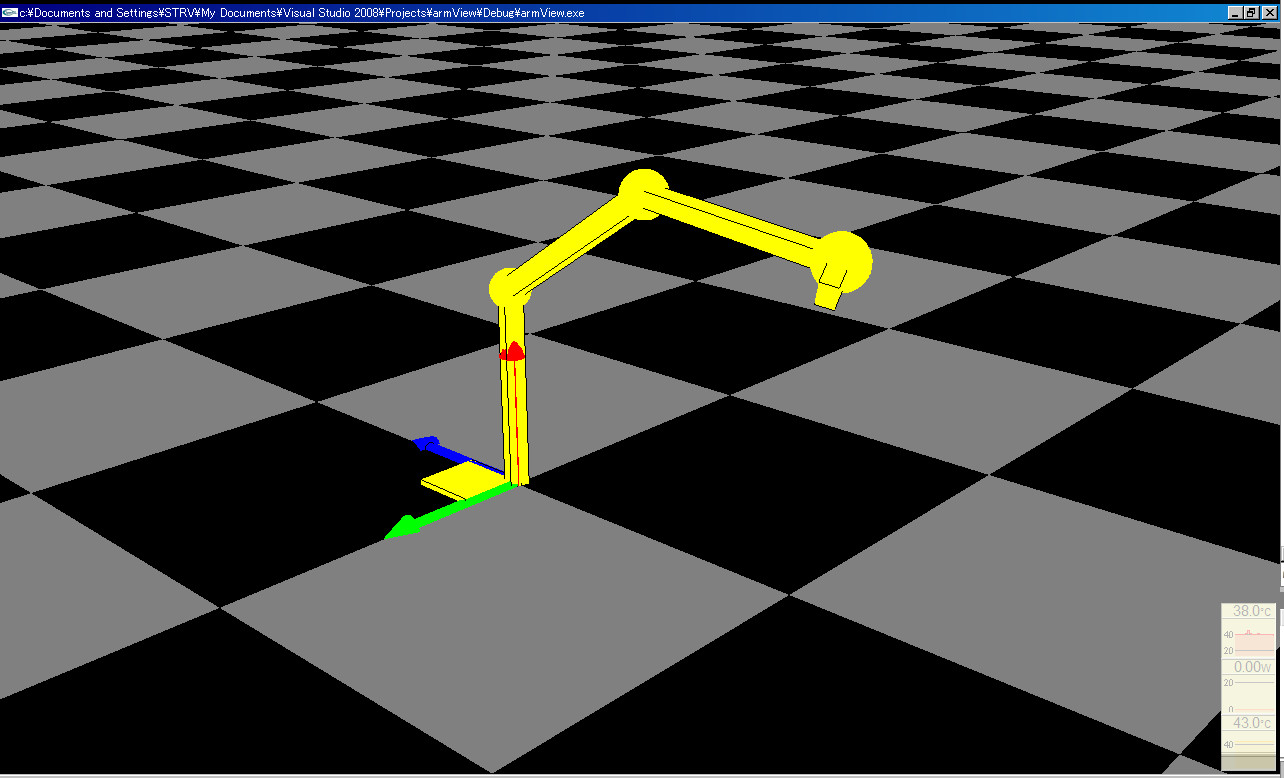操作・表示といっても。順運動学からアームの姿勢を取得して表示するため、行列計算をちゃんとやってます。