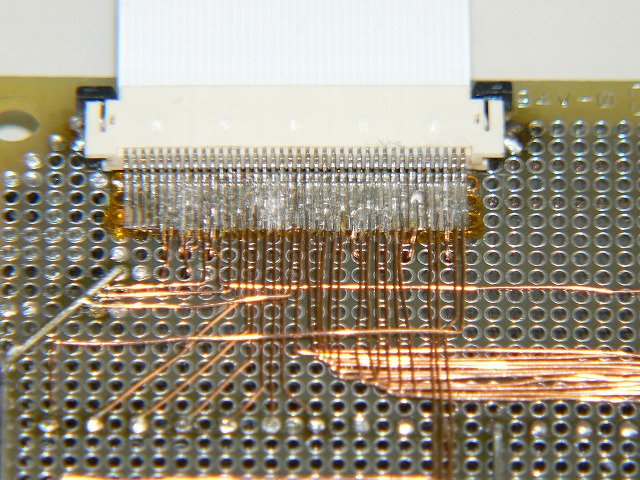後コネクタは40pinしか手に入らなかったので、ケーブルも40pinとし、液晶側を切手対処してます。